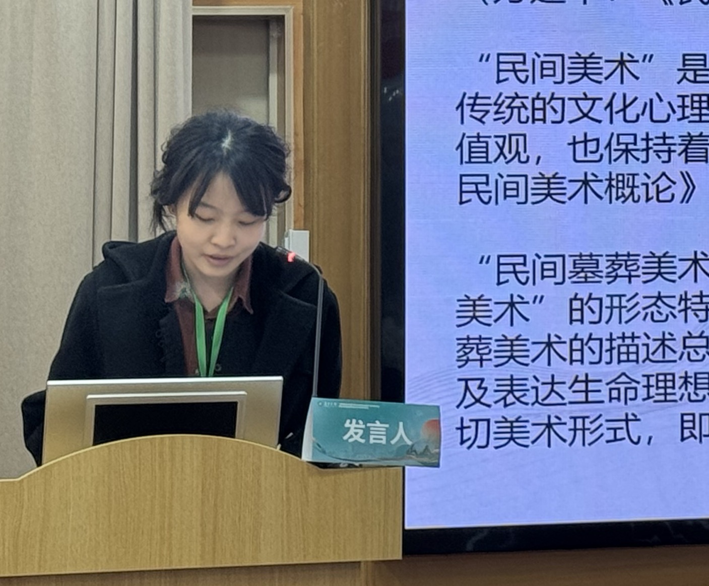 分论坛中,我院师生凭借扎实的研究积累展现了学术风采。郑天一老师以《人神互惠:民间信仰角色塑造的一种解读——基于内丘纸马的田野考察》为题,在“年画艺术研究”专场分享研究成果;硕士研究生贺新月聚焦东昌府木版年画的美育价值转化,作《从文化遗产到美育资源:东昌府木版年画融入高校美育路径研究》主题发言;硕士研究生赵修怡则在“非遗保护研究”专场,围绕《古代民间墓葬美术的死亡意识与社会价值研究——基于文化相对论的视角》展开深入探讨。此外,硕士研究生钱怡然参与“民间信仰与民间传说研究”专场交流,与学界同仁共同探讨桃源集花供的文化生态价值。
