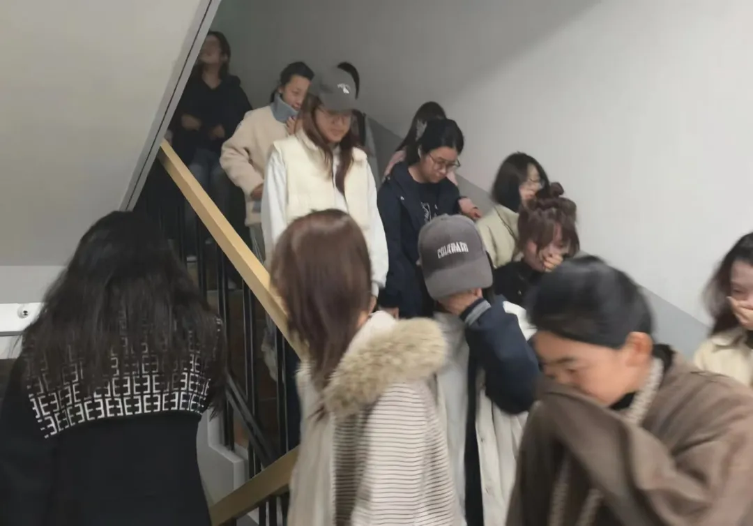 演练开始前,负责人对楼内消防设施进行了全面检查与维护,涵盖烟雾报警器、消防栓及灭火器等关键设备,确保其处于良好运行状态。同时面向参与学生发布演练注意事项,明确疏散流程,规划合理路线,并在各通道设置醒目标识,保障路线清晰可辨。随着消防警报响起,同学们迅速反应,用湿毛巾捂住口鼻,采取低姿弯腰方式,严格沿预定路线有序撤离。过程中全体人员自觉保持距离,有效防止拥挤与踩踏风险。抵达安全集结点后,负责人立即清点人数,确认全员均已安全疏散。
