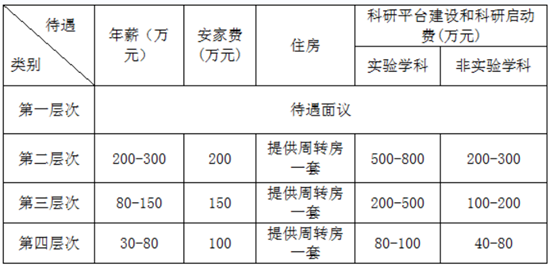 注:高层次人才除全职引进外,还可以柔性引进,具体待遇视在校工作时间、工作业绩等商定,“一人一策、一事一议”。