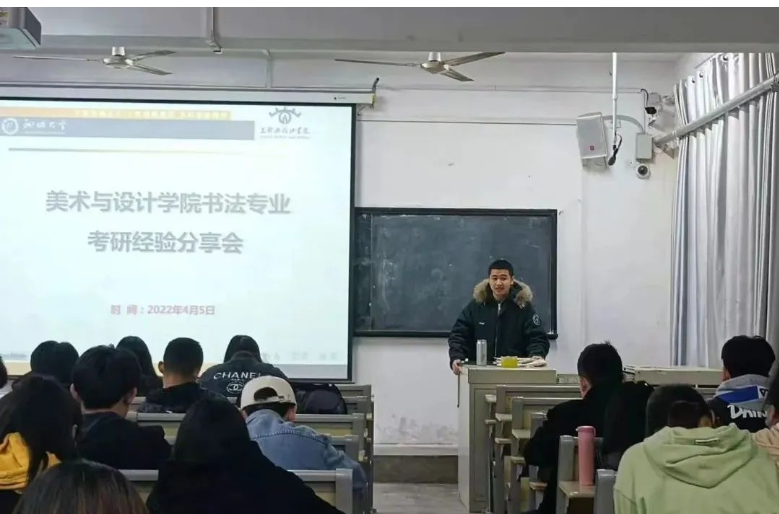 为调动我校美术与设计学院书法系学子的考研积极性,明确考研目标,获取考研经验。我院于4月5日晚七点,面向书法系2019级、2020级学子在七号楼301合堂进行书法考研经验分享会,本次分享会由美术与设计学院辅导员崔洁康主持。