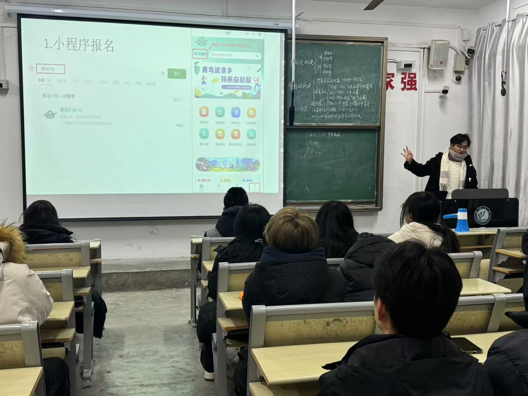 活动展开前期活动负责人提前联系各班班长和团支书进行宣传,对其进行说明和阐释活动目的。接着,宣讲人用展示PPT的形式从社会实践专题、社会实践专项和社会实践报名操作流程等方面详细的对2025年寒假社会实践活动进行了讲解。让参与者对实践活动有更清晰的认知,同时,这也是动员大家积极参与社会实践的契机,通过介绍实践活动的各项流程和积极影响,能激励更多同学以更饱满的热情投入其中,营造积极的氛围。最后,宣讲人对大会进行总结,再次强调社会实践的重点内容和注意事项,鼓励同学们以饱满的精神状态积极参与社会实践,为大会画上完整句号。