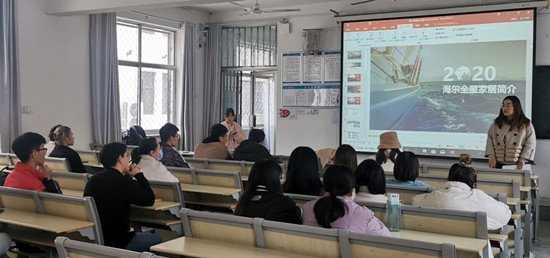 首先,辅导员朱晴向到场的毕业生介绍了企业概况,鼓励同学们多多投递简历,为自己提供更多的就业机会。其次,海尔全屋家居企业校园招聘主管李经理针对企业背景、招聘岗位、薪资待遇等各方面向同学们做了详细介绍。除了硬性条件之外,李经理提出应聘者应具有吃苦耐劳的精神和敢于担当的责任心,这样才能在众多的应聘者中脱颖而出,成功就业。最后,同学们纷纷向心仪的岗位投递简历,李经理耐心解答了同学们在就业择业、设计行业发展、职业规划等方面的一系列问题。