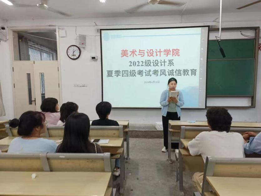 为弘扬诚信考风,树立优良学风,增强学生诚信意识。6月10日,美术与设计学院于7号楼201教室开展了关于大学生英语四级考试“诚信教育和考风考纪”主题班会。此次班会由辅导员孙云霞主持,报名此次四级的全体同学积极参与。