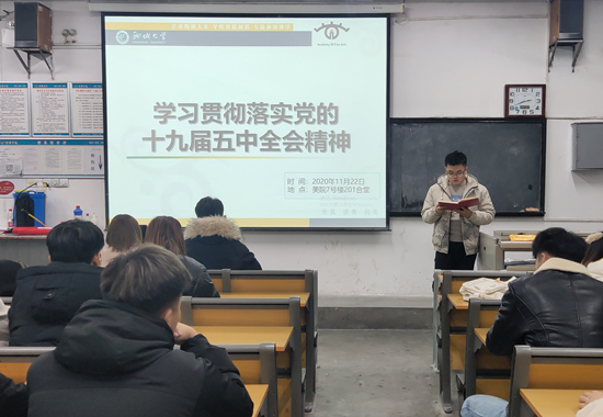 党的十九届五中全会擘画的宏伟蓝图鼓舞人心,中国青年面临建功立业的难得历史机遇,共青团面临担当进取的难得历史机遇。为深入学习宣传贯彻党的十九届五中全会精神,切实带领广大青年把思想和行动统一到全会精神上来,聊城大学美术与设计学院积极响应号召,于11月22日在7#201合堂举办“学习贯彻党的十九届五中全会精神”会议。