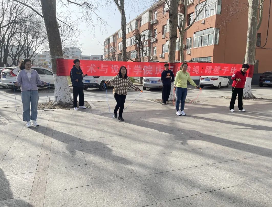 值此“三八”国际妇女节到来之际。3月8日下午,美术与设计学院在西校区7号教学楼前举行“庆三八”踢毽子、跳绳比赛。党委副书记孙研红、团委书记相萌萌、辅导员及全体女教师参加活动。学院党委书记杨庆实、院长张兆林及工会主席王青嵩共同主持比赛,并全程提供服务。