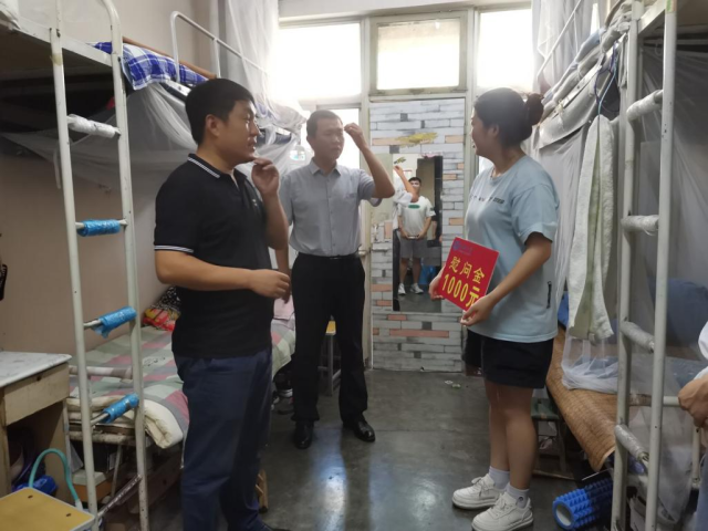 为贯彻落实学校贫困生资助政策,帮助困难学生度过一个温暖有爱的假期,7月13日美术与设计学院党总支副书记、副院长杨庆实、辅导员孔德滕、崔洁康一行来到紫藤公寓8号楼与学苑公寓5号楼进行宿舍走访慰问活动。