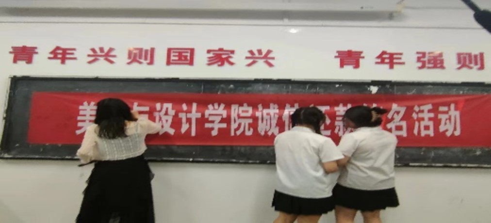 诚信是我国传统美德,我院一直重视对学生的诚信教育,强调诚信是做人之根本,立业之基。此次活动结束后各位参会人员在条幅上郑重签字,承诺未来将把诚信贯彻到生活和学习中,也将积极主动偿还助学贷款。