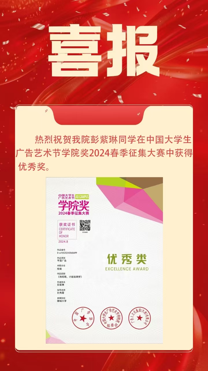 » 喜报|我院学子荣获中国大学生告艺术节学院奖2024春季征集大赛优秀奖