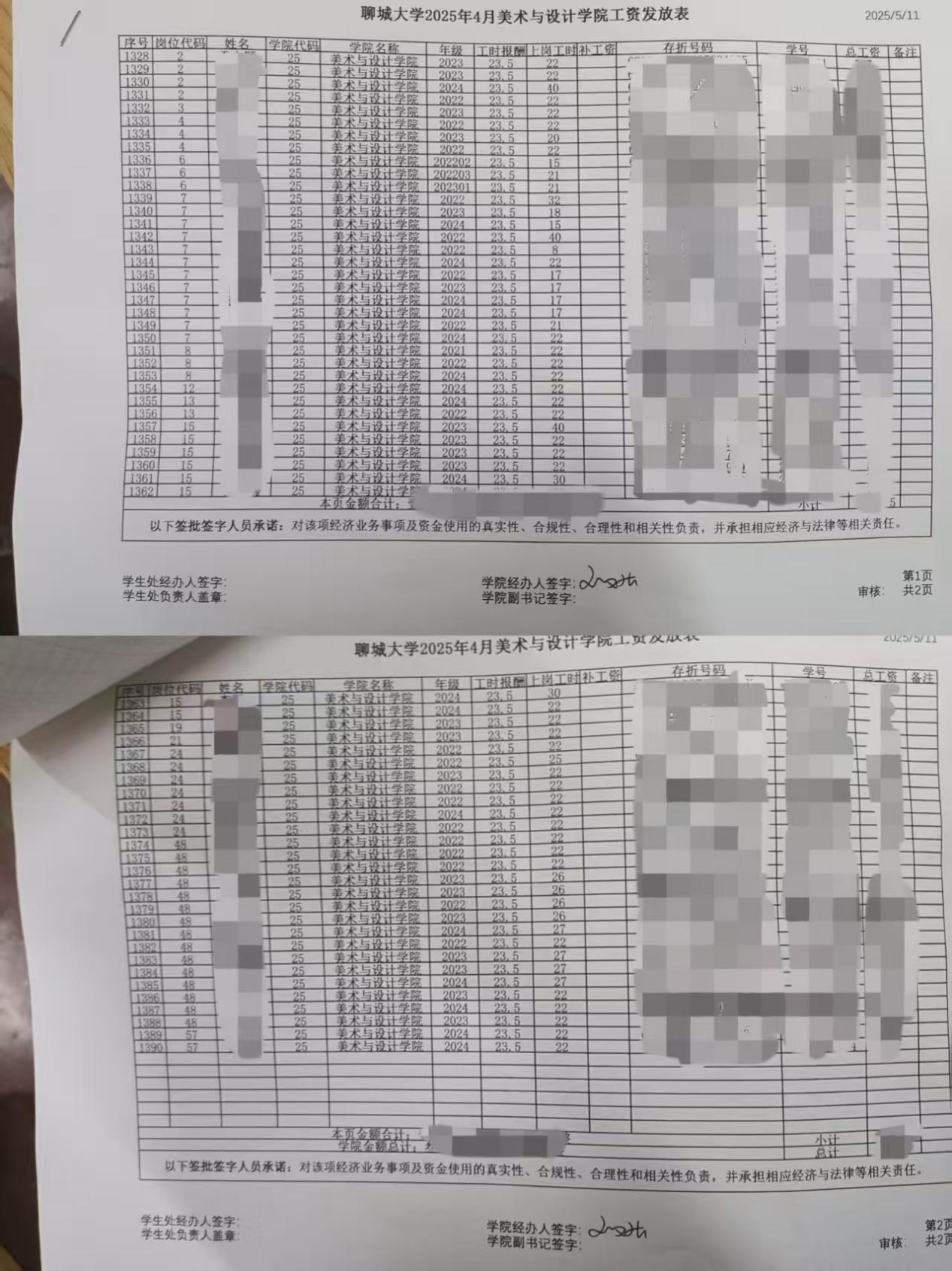 聊城大学美术与设计学院2025年4月勤工助学工资公示 作者:徐嘉琦 来源:美术与设计学院 发布时间:2025-04-10 阅读次数: 为规范学院勤工助学管理工作,确保工资发放公开、公平、公正,根据《美术与设计学院勤工助学管理办法》相关规定,现将2025年4月10日勤工助学工资发放情况予以公示 ,具体内容如下: