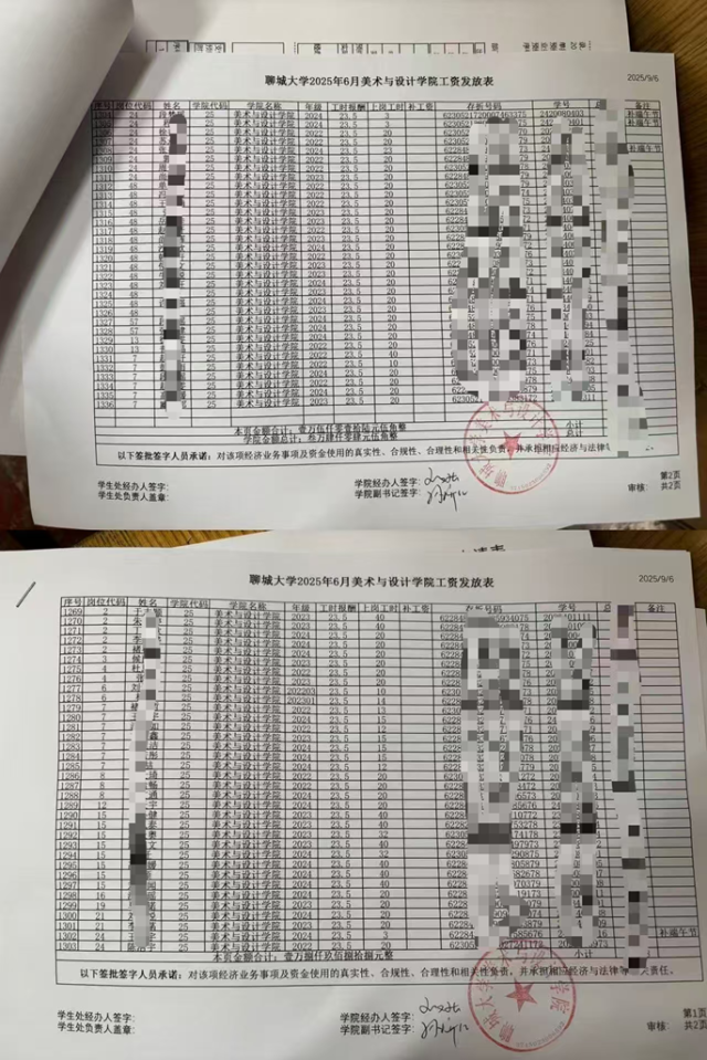 聊城大学美术与设计学院2025年6月勤工助学工资公示