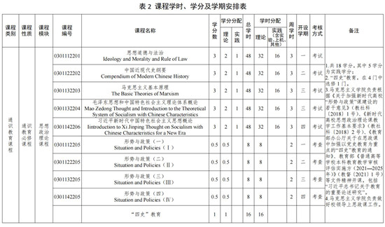 五、课程的学时、学分及学期安排(见表 2)
