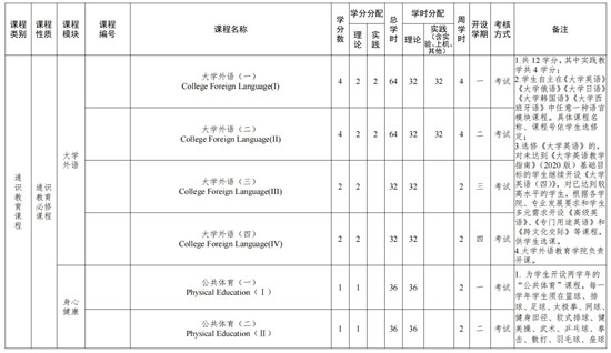 1.通识教育必修课程中包括理论课堂教学 472 学时,实践教学 232 学时,不含军事技能训练 2 周。