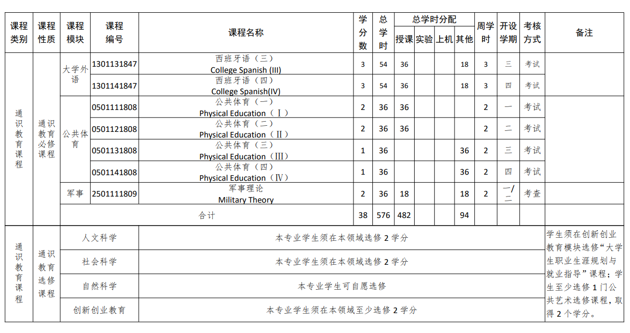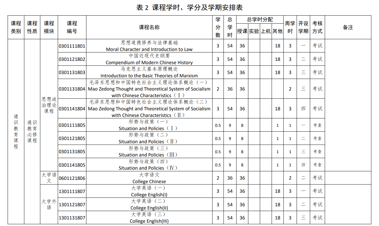 1.本专业本科生必须修满通识教育课程中的必修课程 38 学分和选修课程 6 学分,总计 44 学分。