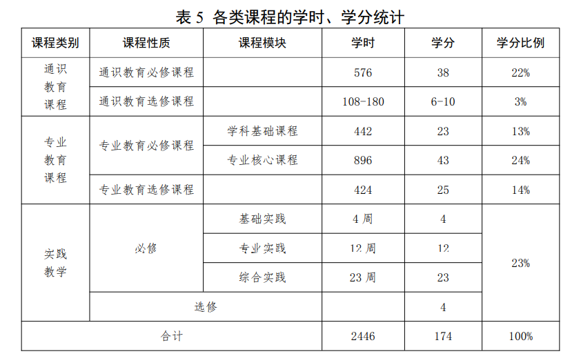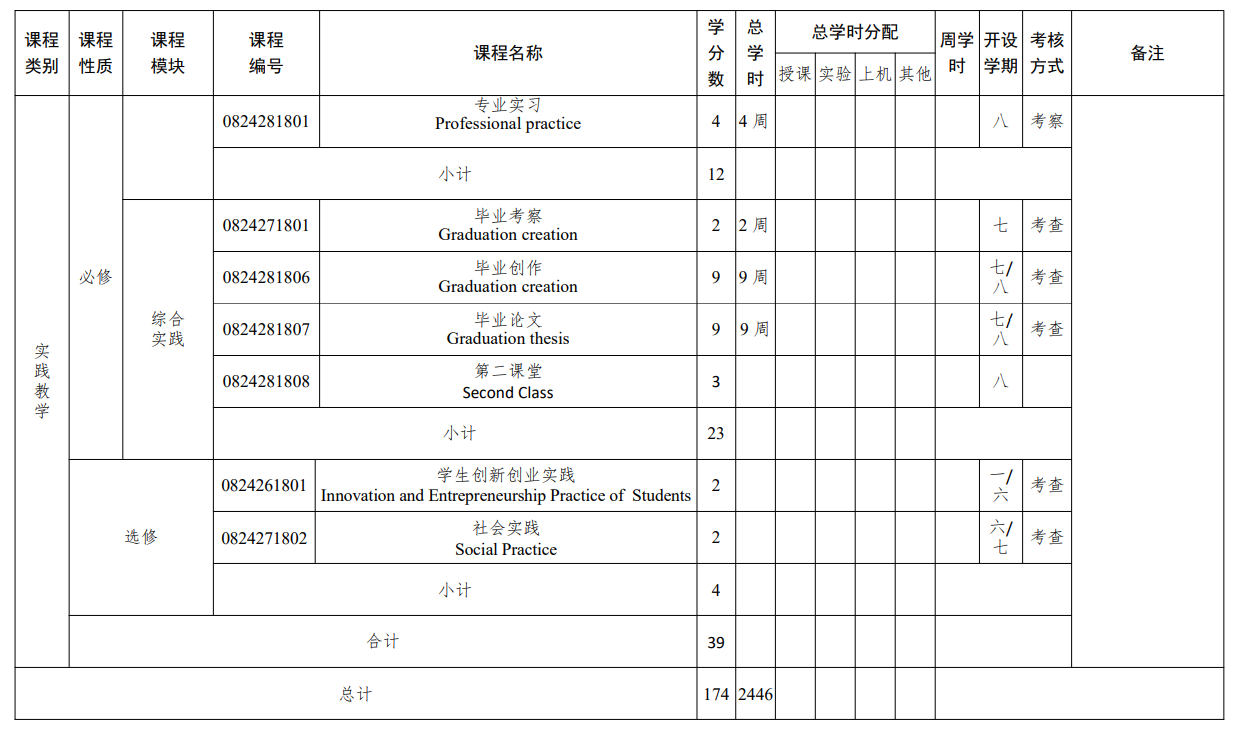 5. 本专业本科生在实践教学中必须修满 39 学分。