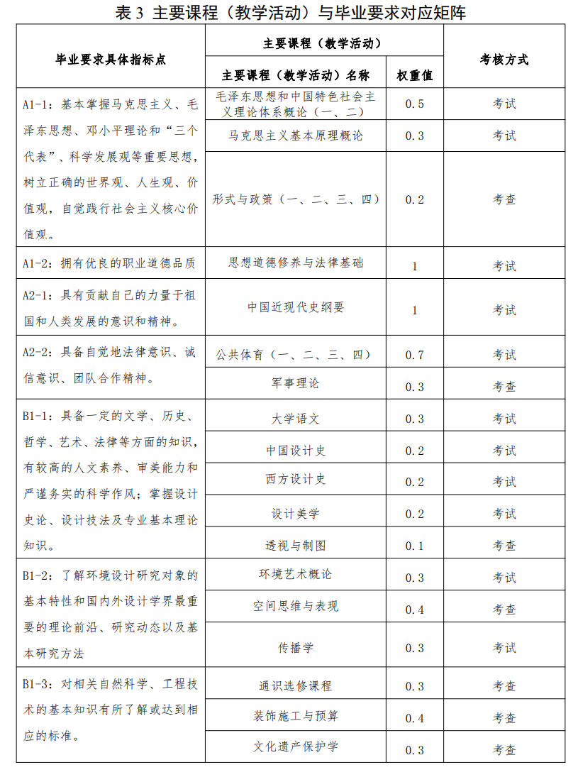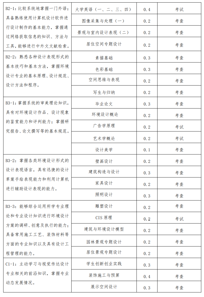 B3-3:能够综合运用所学专业理论和专业设计知识进行环境设计方案的调研、创意及执行的能力;具备常用施工工艺、装饰材料等方面的专业知识以及具有设计工程管理的能力。
