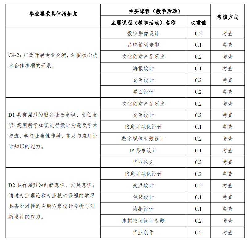 目标 4:具有一定的组织管理能力、较强的表达能力和人际交往能力以及团队协作能力;熟悉 行业发展等方面的方针政策和法律法规,能正确认识视觉传达设计对客观世界社会的影响;