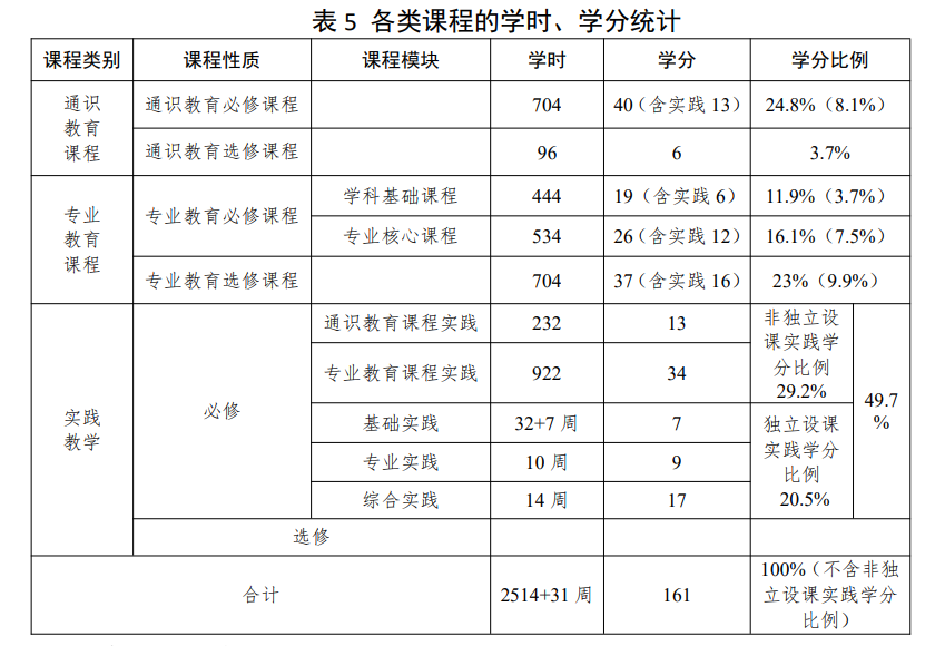 4.本专业本科生在实践教学中必须修满 33 学分。
