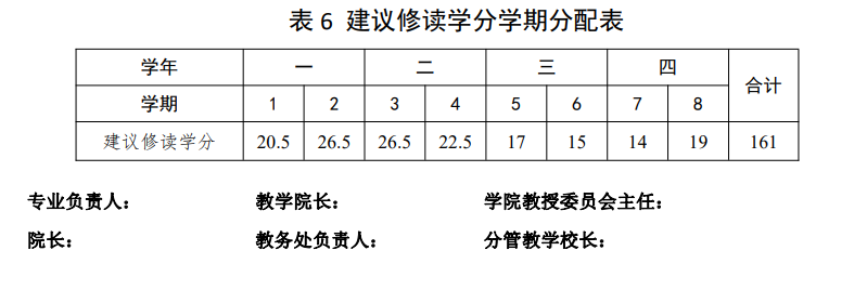 5.表 6 为本专业本科生建议修读学分学期分配表