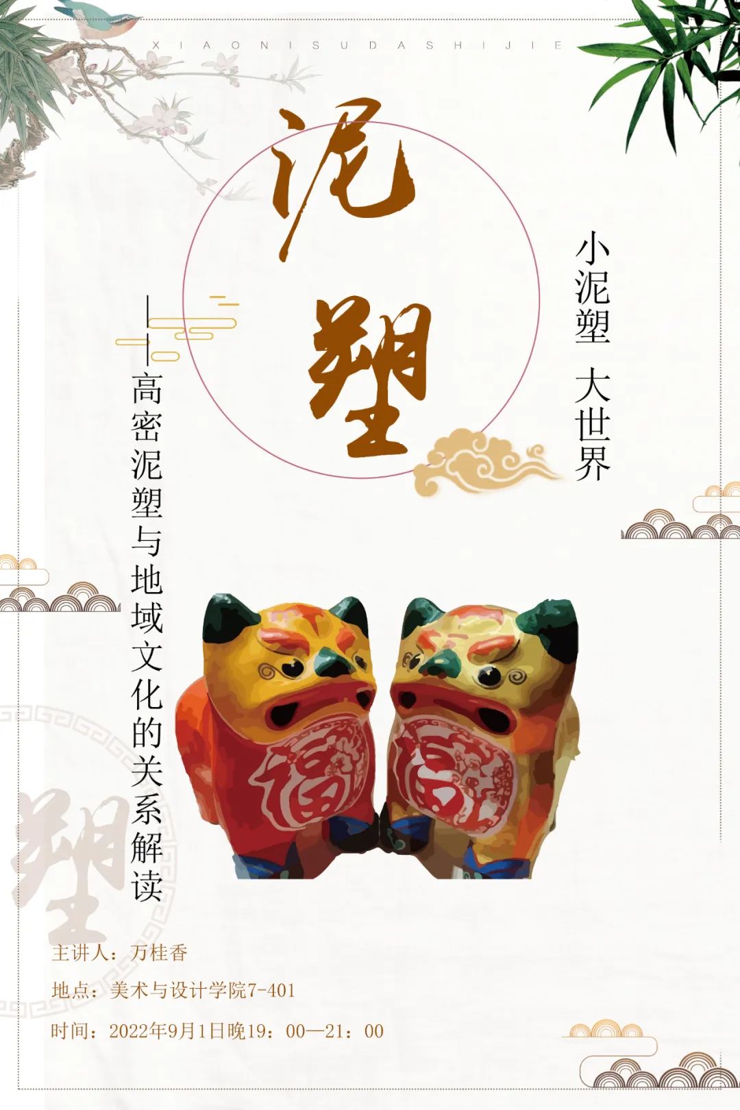 2022年9月1日在7号教学楼401教室,我院万桂香老师为2021级全体研究生作题为《高密泥塑与地域文化的关系解读》讲座。