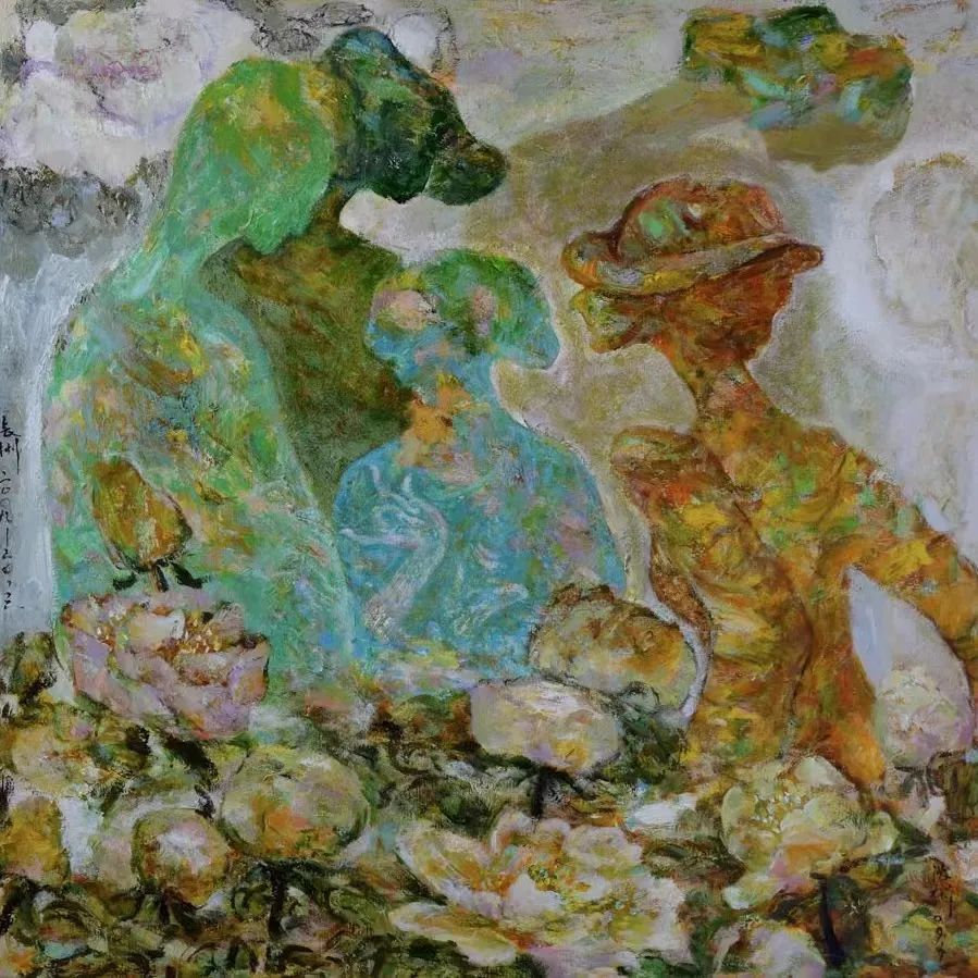 本次展览共展出90多件作品,以“桃花源与元宇宙”为主题,以油画、纸本、装置等形式呈现,作品材质涵盖了布面亚克力、纸面综合材料以及羊毛、真丝、免烤黏土。绘画作品以朦胧的色彩将观者引入无止境的遐想,纯美、独特而震撼。