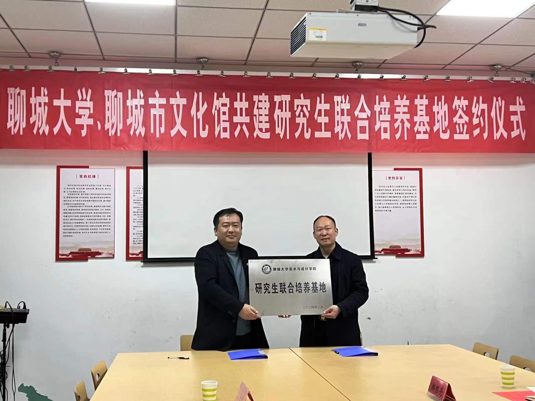 3月5日上午,美术与设计学院院长张兆林、副院长史秀娜、王青嵩,科研秘书王蕊一行赴聊城市文化馆,签订研究生联合培养基地协议,并为基地挂牌。聊城市文化和旅游局二级调研员、副局长刘庆涛,聊城市文化馆馆长韩银亮,副馆长王海云,副书记刘鹏出席。