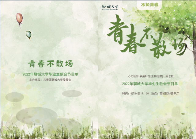2022年6月设计制作聊城大学毕业生歌会节目单;