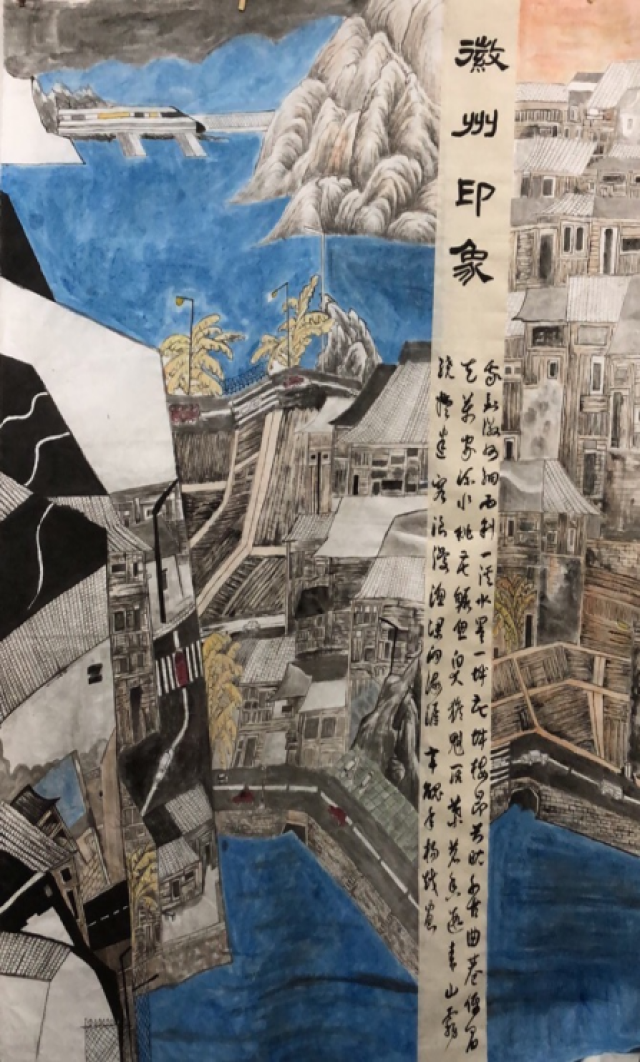 2021年10月作品《徽州印象》入选“泉荷奖”济南市第二届优秀美术作品评比展览;