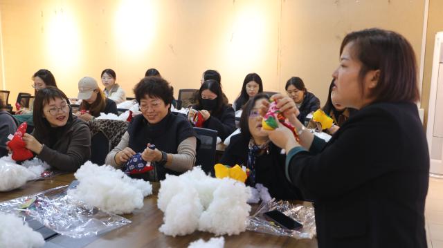 我院举办黄河边的手工艺·布老虎制作实操课 作者:樊丽媛 来源:美术与设计学院 发布时间:2024-11-04 阅读次数: 11月4日,我院举办了黄河边的手工艺布老虎制作实操课,邀请滨州东寅布老虎传承人刘娜现场指导,各单位50多名师生参加了活动。 刘娜为大家讲述了东寅布老虎的发展历程,同时详细示范了布老虎的制作步骤。参加活动的师生在刘娜老师的指导下完成了布老虎的制作,进一步领略了黄河边民间手工艺的魅力,更加坚信传统手工艺将在新时代绽放出更加绚烂的光彩。 审核 张兆林 孙艺 邢怀焱